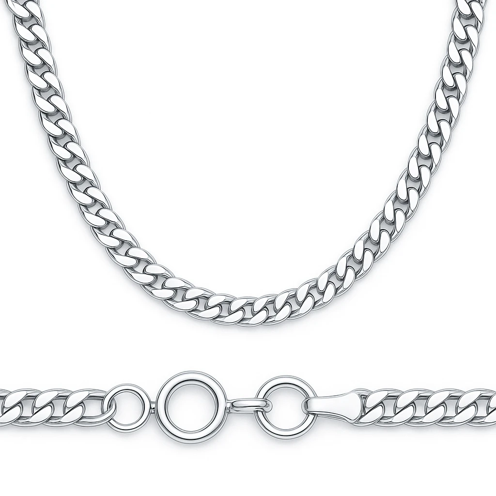 Стильная и изящная цепочка из серебра 925 пробы с классическим панцирным плетением. Изделие покрыто родием для дополнительного блеска и защиты от потемнения.