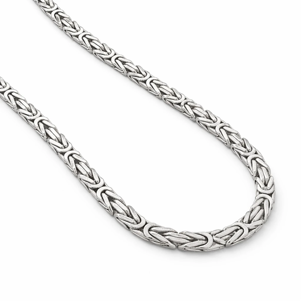 Цепочка «Королевское» KEs35537560Kön-60 выполнена из массивного серебра 925 пробы и отличается выразительным объёмным плетением. Королевское плетение (Byzantinisches / Königsgeflecht) ценится за сложную структуру звеньев, высокую прочность и эффектный внешний вид.