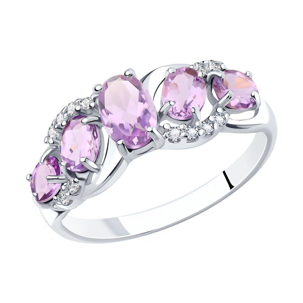 Женское кольцо из серебра 925 пробы с аметистом и фианитами DR-S-011011 | Размер 17,5 (55)
