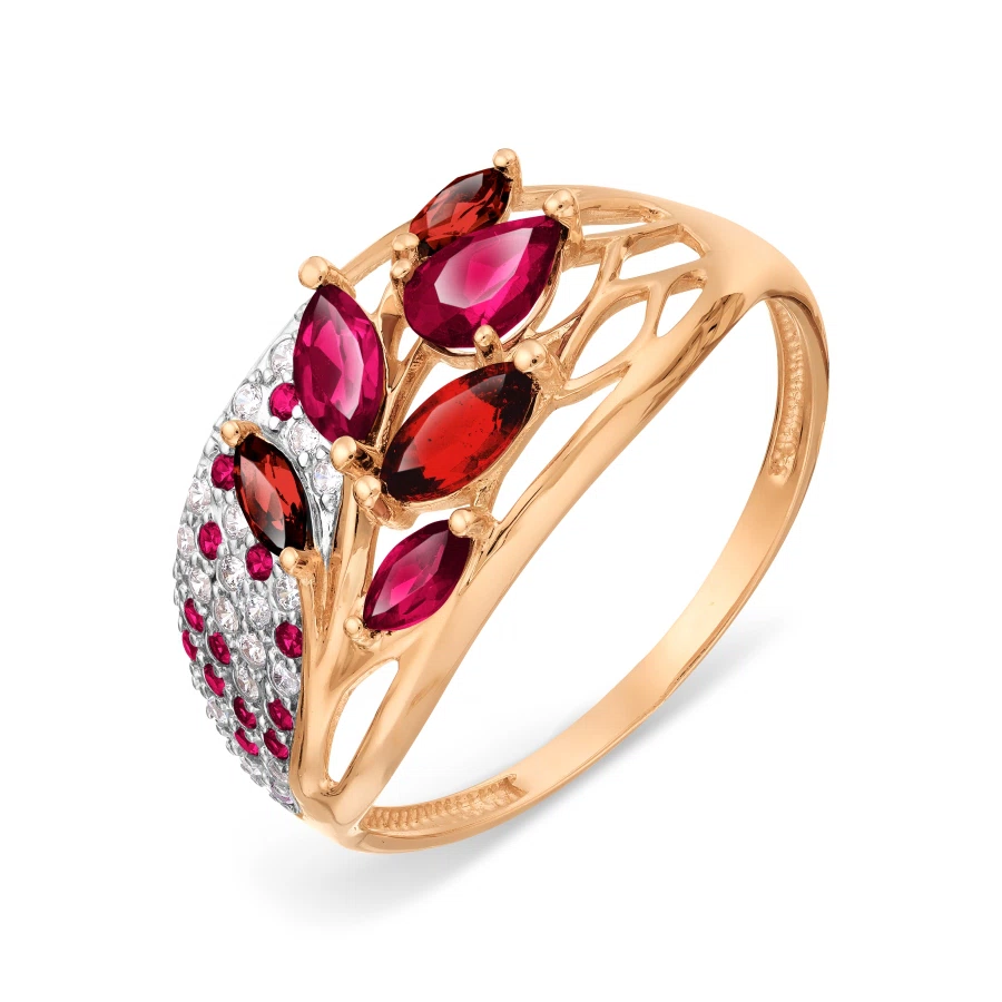 Кольцо из красного золота с аметистом, гранатом и фианитами DR-01A342-1-Mix | Размер 18 (57)
