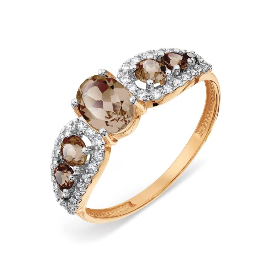 Женское кольцо из красного золота 585 пробы, с раухтопазами и фианитами (DR - 01276 - Rt).