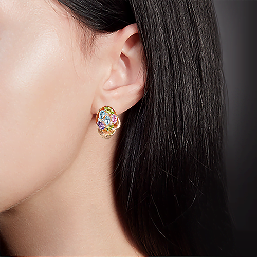 Золотые серьги с хризолитом аметистом топазом и фианитами⎪OR02-3838-00-248Mix