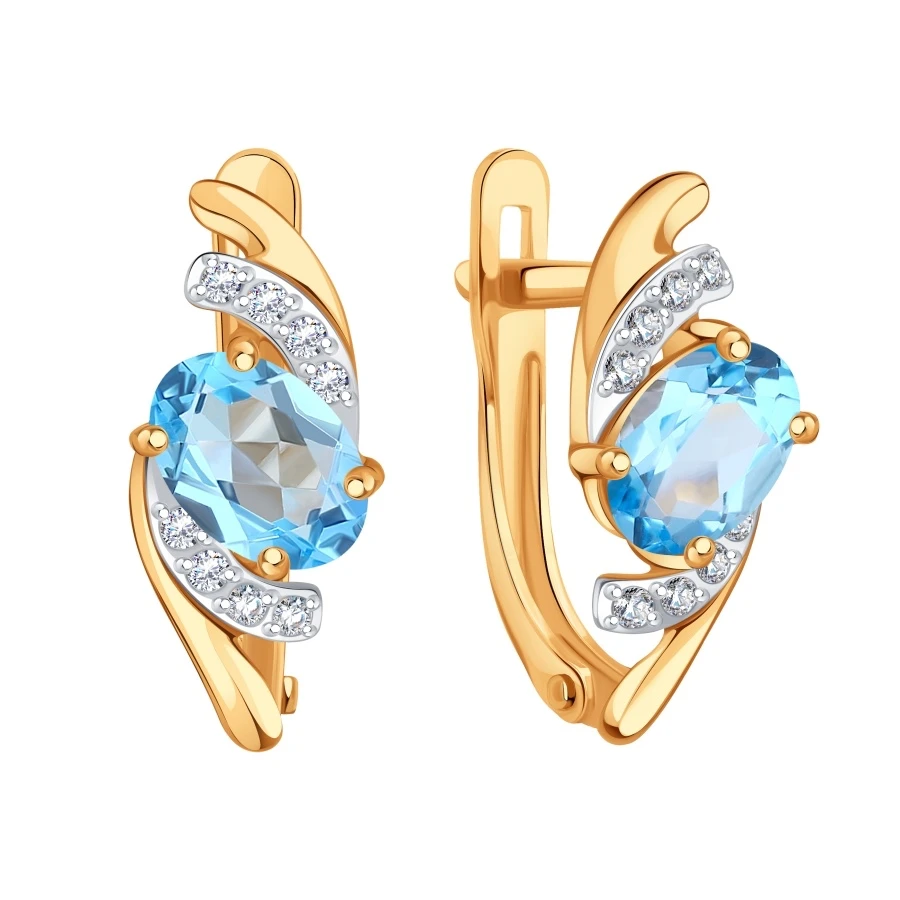 Серьги из красного золота 585 пробы с натуральным топазом и фианитами OR14702B780T